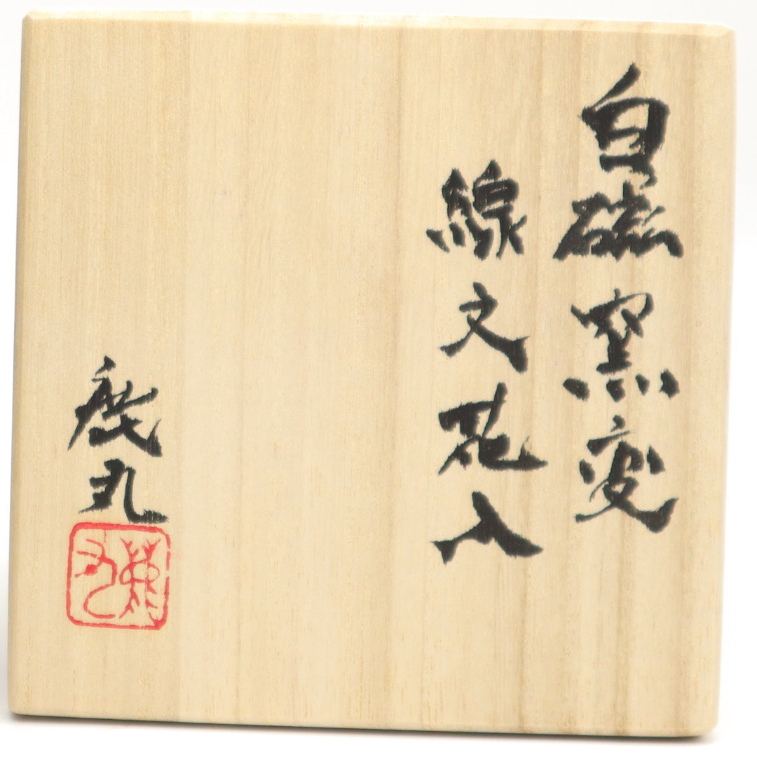 White Porcelain Kiln-fired Lined Flower Vase by Mashiko ceramic artist Takeshita Shikamaru is a refined example of contemporary Japanese studio pottery rooted in tradition. Handcrafted in Mashiko, this vase features a vertically lined surface formed on the wheel, creating a quiet rhythm and subtle movement across its cylindrical form.