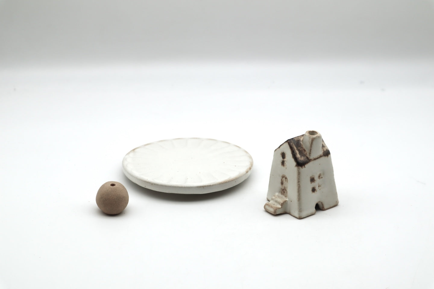 This Mashiko Incense Holder Set by Wakasama Pottery brings together charming design and traditional craftsmanship. The set includes a house-shaped holder, a round ball holder, and a matching plate, all handcrafted in Mashiko, a historic pottery town celebrated for its warm, earthy ceramics.